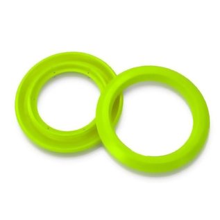 Die neue ROADIES Felge ist vorne und hinten jeweils 2teilig gefertigt und dadurch ihnen hohl, was sie extrem leicht macht. Sie ist in den Farben Weiß und Neon Gelb erhältlich. Die Felgen sind auch einzeln ohne aufgeklebte Reifen erhältlich und lassen sich ohne Schaden zu nehmen in Aceton von verklebten Reifen trennen und immer wieder verwenden. Ein ausgeklügeltes System ermöglicht es, in die Felge zusätzliche Gewichte einzulegen und so das Gewicht des Reifens zu variieren. Zusätzlich können von außen weitere Gewichte angebracht werden, um flexibel auf verschiedene Streckenverhältnisse reagieren zu können.