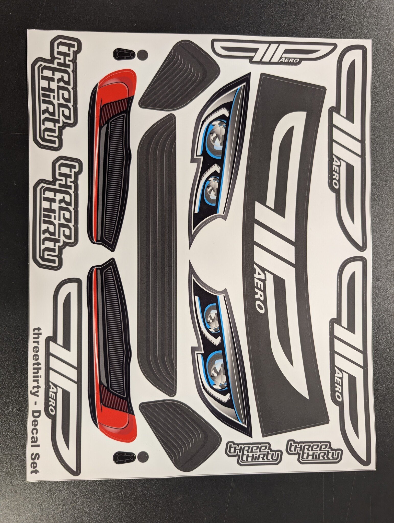 ThreeThirty 1:5 decal set from PIP Aero for a sharp, professional race look. Precision-cut, high-quality print for easy application and perfect fit. Upgrade your body with clean graphics and aggressive styling.